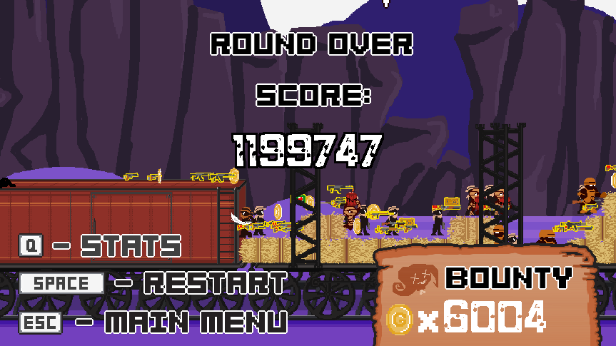 A frantic and fast-paced 2D arena shooter with an eye for (gun) details. Earn a high score and increase the bounty on your head while fighting on a runaway train crawling with enemies.